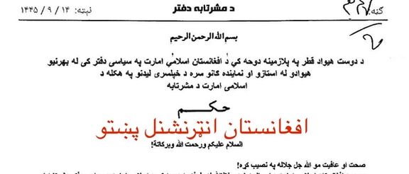 افغانستان انټرنشنل ـ پښتو یو مکتوب ترلاسه کړی، چې پکې د طالبانو مشر ملا هبت الله اخوندزاده په دغه ډله کې د درز پیدا کېدو د مخنیوي لپاره دوحه کې له سیاسي دفتر او نورو طالب چارواکو غوښتي، چې په دغه دفتر کې د بهرنیو هېوادونو له استازو سره هر ډول «خپلسرې ښکاره او پټي غونډې منع دي.»