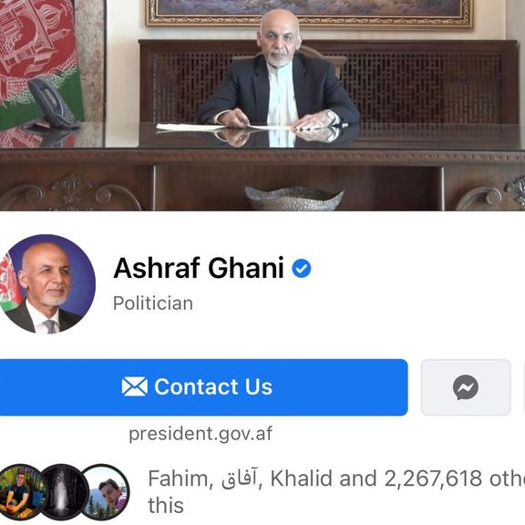 اشرف غنی، رئیس جمهور پیشین افغانستان در یک پیام توییتری گفته که صفحه رسمی فیسبوکش از دسترس او خارج است. اندکی پیشتر، پیامی در حمایت از دولت طالبان در صفحه فیسبوک او منتشر شده بود. در پیام منسوب به او، از جامعه جهانی خواسته شده بود تا حکومت طالبان را به رسمیت بشناسد.