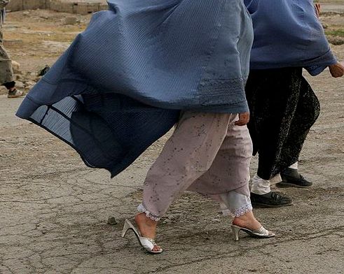 یکی از اعضای گروه طالبان در گفتگویی در تلویزیون طلوع در مورد شرایط خاص طالبان برای پوشش زنها میگوید کفش پاشنه بلند را خارجیها به خاطر تحریک جوانان ساختهاند و صدای آن توجه جوانان را جلب میکند. به گفته این عضو طالبان، رنگ لباس زنها جذاب نباشد و خوشبوی از خانه بیرون نشوند.