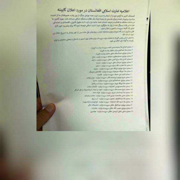 طالبان میگوید تصفیه این گروه از افراد "نااهل" شامل اعضای متهم به تروریزم در کابینه این گروه نمیشود. محمد نعیم، از سخنگویان طالبان در قطر به خبرگزاری روسی اسپوتنیک گفت این گروه درحال پاکسازی افراد مسلح خود از افراد "نااهل" است اما تاکید کرد این تصفیه شامل اعضای کابینه نمیشود.