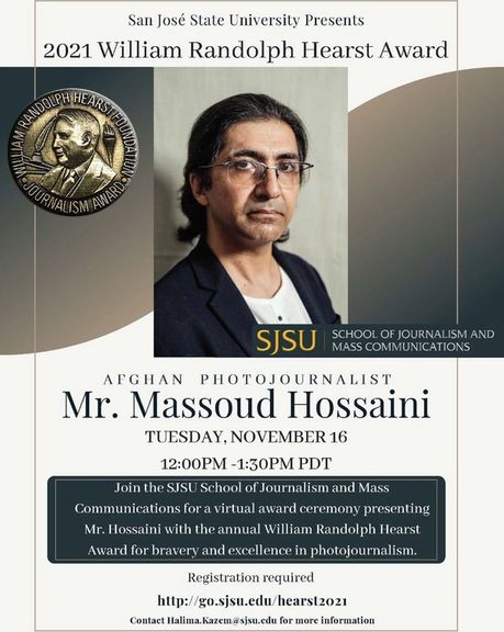 مسعود حسینی، عکاس خبری افغان، برنده جایزه آزادی بیان ویلیام هرست در امریکا شد. او این جایزه را در روز ۱۶ نوامبر از دانشگاه دولتی سنخوزه کالیفرنیا دریافت خواهد کرد.