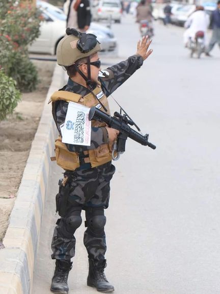 انتشار عکسی از یک کودک با لباس کماندویی توسط شبهنظامیان طالبان، در شبکههای اجتماعی واکنشهایی در پی داشته است. این عکس در یک حساب توییتری منتشر شده که برای قطعه انتحاری بدری ۳۱۳ مربوط شبکه حقانی تبلیغ میکند. کاربران از طالبان خواستهاند به جای تفنگ بهدست کودکان قلم بدهند.