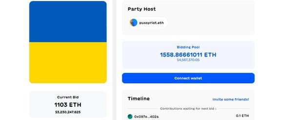 بنیانگذار یک گروه راک منتقد ولادیمیر پوتین به نام پوسی رایِت، برای کمک به مردم اوکراین، ده هزار NFT (توکن غیرقابل معاوضه) از پرچم آن کشور را تهیه کرده و به مزایده گذاشته است. نسخه اولیه یک طراحی ساده دیجیتال این پرچم تاکنون بیش از ۳ میلیون و ۲۰۰ هزار دالر قیمتگذاری شده است.