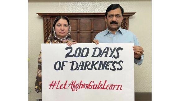 والدین ملاله یوسفزی، برنده جایزه صلح نوبل از تداوم ممنوعیت تحصیل دختران در افغانستان توسط طالبان انتقاد کردند. آنان با انتشار عکسی گفتهاند ۲۰۰ روز تعطیلی مکاتب دخترانه، ۲۰۰ روز تاریکی است. ضیاءالدین یوسفزی، پدر ملاله به طالبان گفته "بگذارید نور بتابد، تحصیل یک حق بشری است."