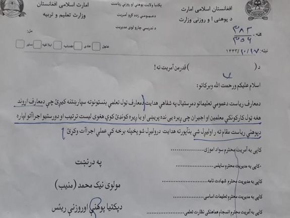 ریاست معارف طالبان در پکتیا: معلمانی که ریش خود را میتراشند یا کوتاه میکنند، معرفی شوند