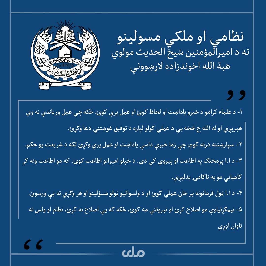 روز پنجشنبه، ۵ جوزا طالبان پیامی منسوب به رهبر این گروه را منتشر کردند که در یکی از مادههای آن آمده است: "باید در تمامی ولسوالیهای افغانستان مدرسه دینی ایجاد شود."