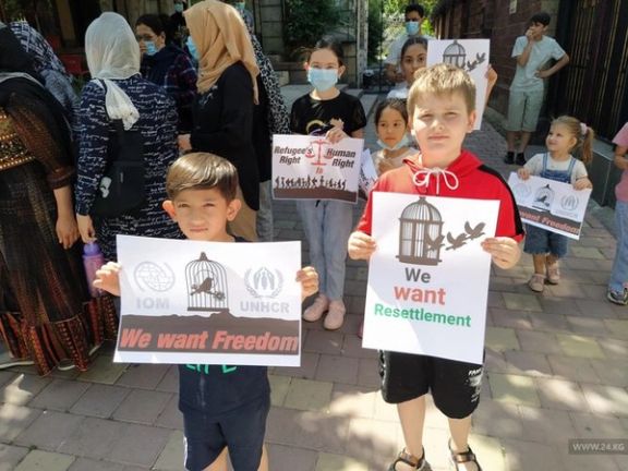 همزمان، شماری از افغانها در قیرقیزستان در مقابل در اعتراض به وضعیتشان در مقابل دفتر سازمان ملل متحد در بیشکک تظاهرات کردند.