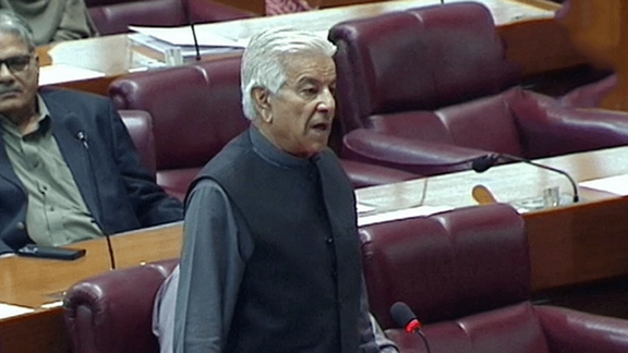 خواجه آصف، وزیر دفاع پاکستان روز جمعه در پارلمان این کشور مدعی شد که عمران خان، نخست وزیر سابق "بارها و بارها" از زبانی استفاده کرده که با آن از "خطوط سرخ دین" عبور کرده است. روزنامه دان به نقل از آقای آصف نوشته است به همین دلیل بود که او روز پنجشنبه مورد حمله یک مرد قرار گرفت.