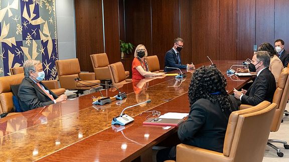 وزیر خارجه ایالات متحده امریکا و دبیرکل سازمان ملل روز جمعه ۵ حوت دیدار کردند. وزارت خارجه امریکا در بیانیهای گفته است که آنتونی بلینکن و آنتونیو گوترش در این دیدار درباره نیازمندی مردم افغانستان در مواجهه با سرکوب مداوم و نقض حقوق بشر از سوی طالبان گفتگو کردند.