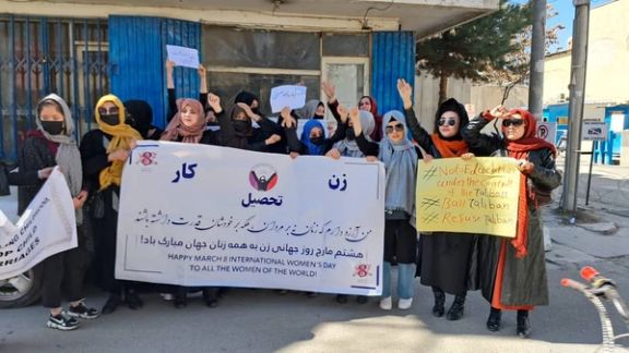 گروهی از زنان روز سهشنبه به مناسبت فرا رسیدن ۸ مارچ، روز جهانی زن، در مقابل دفتر سازمان ملل در کابل، علیه سیاستهای «زنستیزانه» طالبان اعتراض کردند. طبق ویدیوهای رسیده به افغانستان اینترنشنال، این زنان شعارهای «زن، عدالت، آزادی» و «تحصیل، کار، آزادی» سر دادهاند.