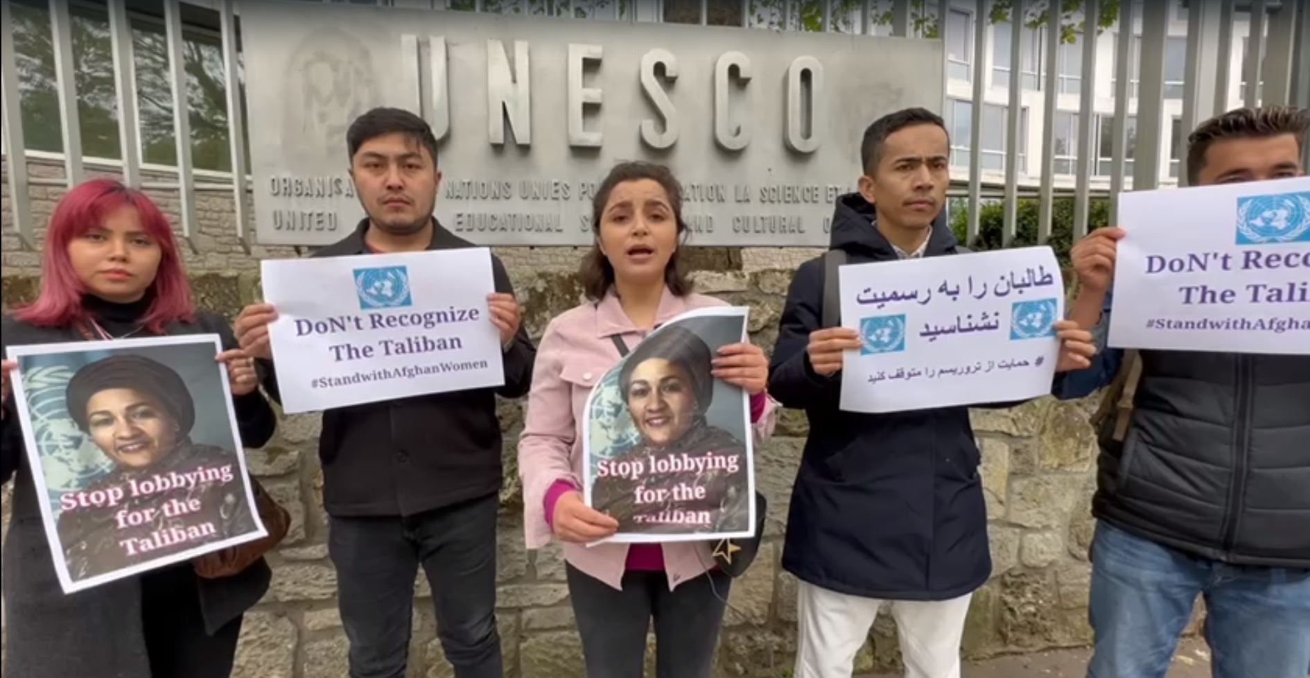 همچنین شماری دیگر از معترضان در برابر دفتر سازمان علمی، فرهنگی و آموزشی سازمان ملل، یونسکو، در پاریس تجمع کردند و از شرکتکنندگان نشست دوحه خواستند که «طالبان را به رسمیت نشناسید» و برای این گروه «لابی نکنید.»