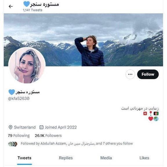 به طور نمونه، پروفایلی در توییتر به نام «مستوره سنجر» ساخته شده که ۲۶ هزار دنبالکننده دارد. در عکسی که برای این پروفایل انتخاب شده، زنی دیده میشود که روسری/ چادر به سر ندارد.