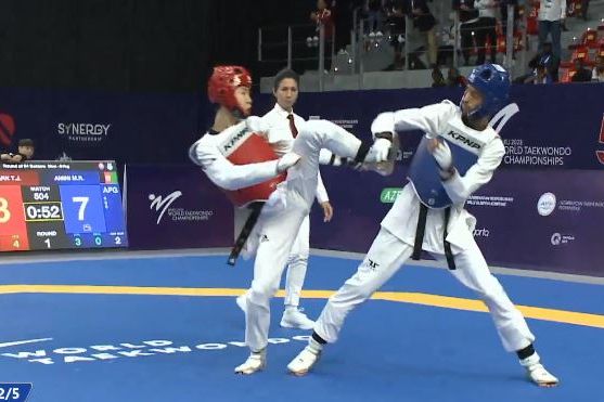 محمد رامین امینی، بازیکن تیم ملی تکواندوی افغانستان صبح امروز در مسابقات جام جهانی تکواندو با «تی جون پارک» از کوریای جنوبی رقابت کرد.