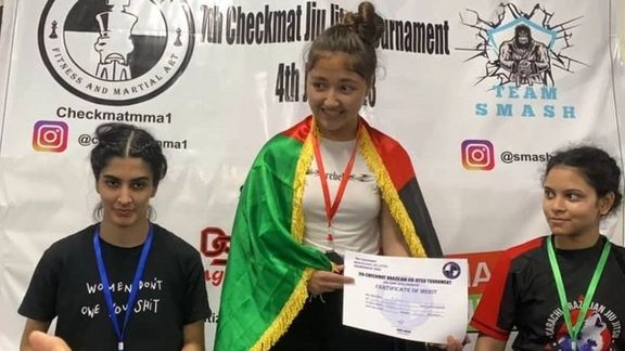 آرزو احمدی، جوجیتسوکار دختر افغان که دو روز پیش در مسابقات بینالمللی جوجیتسو در کراچی پاکستان مدال طلا کسب کرده بود، در راه بازگشت به اسلامآباد و در شهر خیرپور ایالت سند پاکستان توسط پولیس این کشور بازداشت شده است.