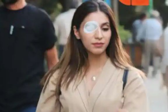 تصویری از کوثر افتخاری، معترض آسیبدیده چشمی، بدون حجاب اجباری در خیابان تهران
