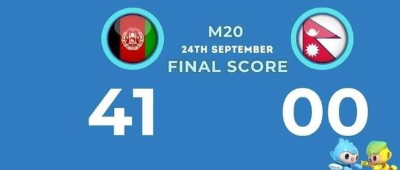 تیم ملی راگبی افغانستان در سومین مسابقهاش امروز در بازیهای آسیایی هانگژو، با نتیجه ٠-٤١ تیم راگبی نیپال را شکست داد. افغانستان نیمه اول این بازی را ٠-١٩ برد و در نیمه دوم پیروزیاش قطعی کرد. بازیکنان نیپال در این دیدار دو کارت زرد از داور مسابقه دریافت کردند.