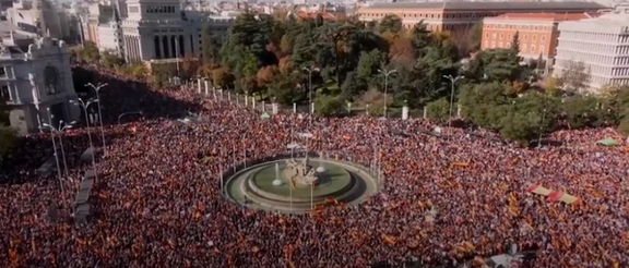 دهها هزار تن از شهروندان اسپانیا روز شنبه در مادرید در اعتراض به طرح پدرو سانچز، نخستوزیر این کشور مبنی بر عفو مقامهای جداییطلب ایالت کاتالونیا تظاهرات کردند. معترضان با حمل پرچم اسپانیا شعار دادند: «سانچز خائن، اسپانیا را نفروش.»