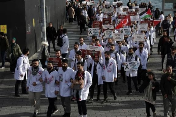 دهها پزشک و دانشجوی پزشکی در استانبول ترکیه برای ابراز همسبتگیشان با هممسلکان خود در غزه، راهپیمایی سکوت برگزار کردند. این پزشکان که چپنهای سفید با لکههای سرخرنگ به تن داشتند، در پلاکاردهای خود نوشتند: «پزشکان در کنار فلسطین میایستند.»
