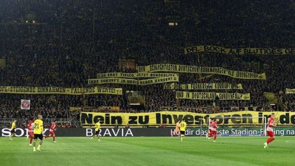 تیم دورتموند در هفته ٢١ بوندسلیگای آلمان امشب میزبان فرایبورگ بود. این بازی در ورزشگاه زیگنال ایدونا پارک برگزار شد و تماشاگران با اعتراض به حضور سرمایهگذاران خارجی در بوندسلیگا، با پرتاب توپ تنیس و سکه به میدان، ١٠ دقیقه بازی را قطع کردند؛ اما دورتموند موفق شد ٠-٣ پیروز شود.