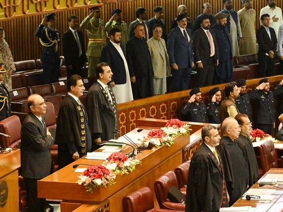 مجلس ملی پاکستان عضویت دو نماینده تحریک انصاف به رهبری عمران خان در این مجلس را با اکثریت آرا تعلیق کرد. دلیل تعلیق عضویت جمشید خان دستی و محمد اقبال خان «استفاده از زبان توهینآمیز» هنگام سخنرانی آصفعلی زرداری، رئیسجمهور، خوانده شده است.