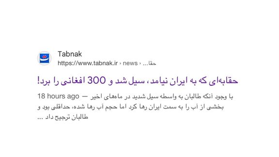 تیتر خبرگزاری «تابناک» درباره سیلابهای مرگبار افغانستان، واکنش کاربران شبکههای اجتماعی را برانگیخت. این رسانه نزدیک به جمهوری اسلامی، روز شنبه خبر سیل در بغلان را با این تیتر پخش کرد: «حقابهای که به ایران نیامد، سیل شد و ۳۰۰ افغانی را برد!»