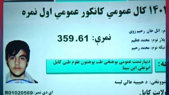 اداره ملی امتحانات تحت کنترول طالبان اتل خان رحیمزوی فرزند محمد عظیم از لیسه عالی حبیبیه کابل را اولنمره کانکور ۱۴۰۳ اعلام کرد. رادیو تلویزیون ملی افغانستان گزارش داد که اتل خان با به دست آوردن ۳۵۹.۶۱ نمره به دانشگاه طبی کابل راه یافته است.