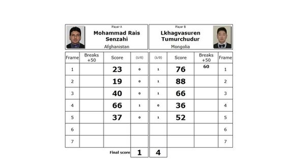 مسابقات جهانی سنوکر؛ رئیس خان سنزی در شانس دوم نیز مقابل ورزشکار مغولستان شکست خورد