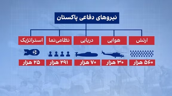 نیروهای دفاعی پاکستان به ۵ شاخه عمده تقسیم میشوند: