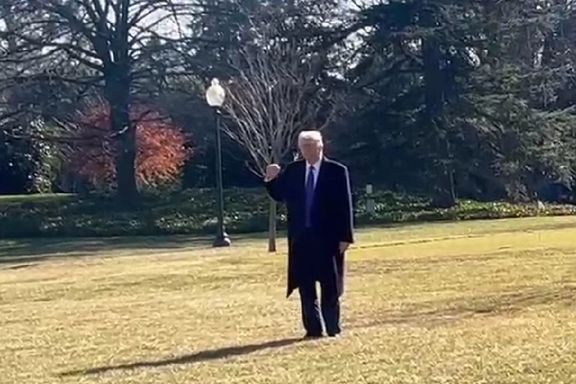 خبرنگار افغانستان اینترنشنال همچنین از او در باره تصمیم کاخ سفید در قبال ایران پرسید. ترامپ درحالی که به خبرنگاران دست تکان میداد، اندکی ایستاد و مشتش را گره کرد.