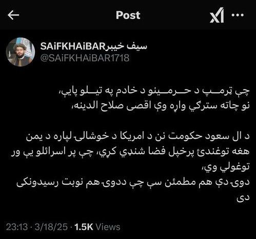 سخنگوی وزارت امر به معروف طالبان، یادداشت خود در انتقاد از عربستان سعودی بهخاطر 'رهگیری و انهدام موشکهای حوثیها' را حذف کرد.