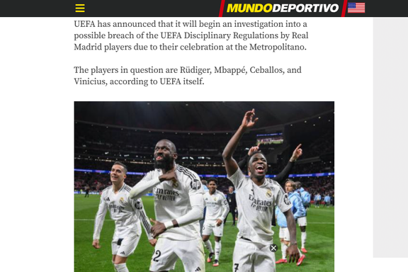 موندو دیپورتیوو گزارش داد که یوفا تحقیقاتی را در باره نقض احتمالی مقررات انضباطی این اداره توسط کیلیان امباپه، وینیسیوس جونیور، آنتونی رودیگر و دنی سبایوس، چهار بازیکن رئال مادرید آغاز کرده است. این اتفاق پس از پیروزی رئال مادرید در لیگ قهرمانان مقابل اتلتیکو مادرید اتفاق افتاد.