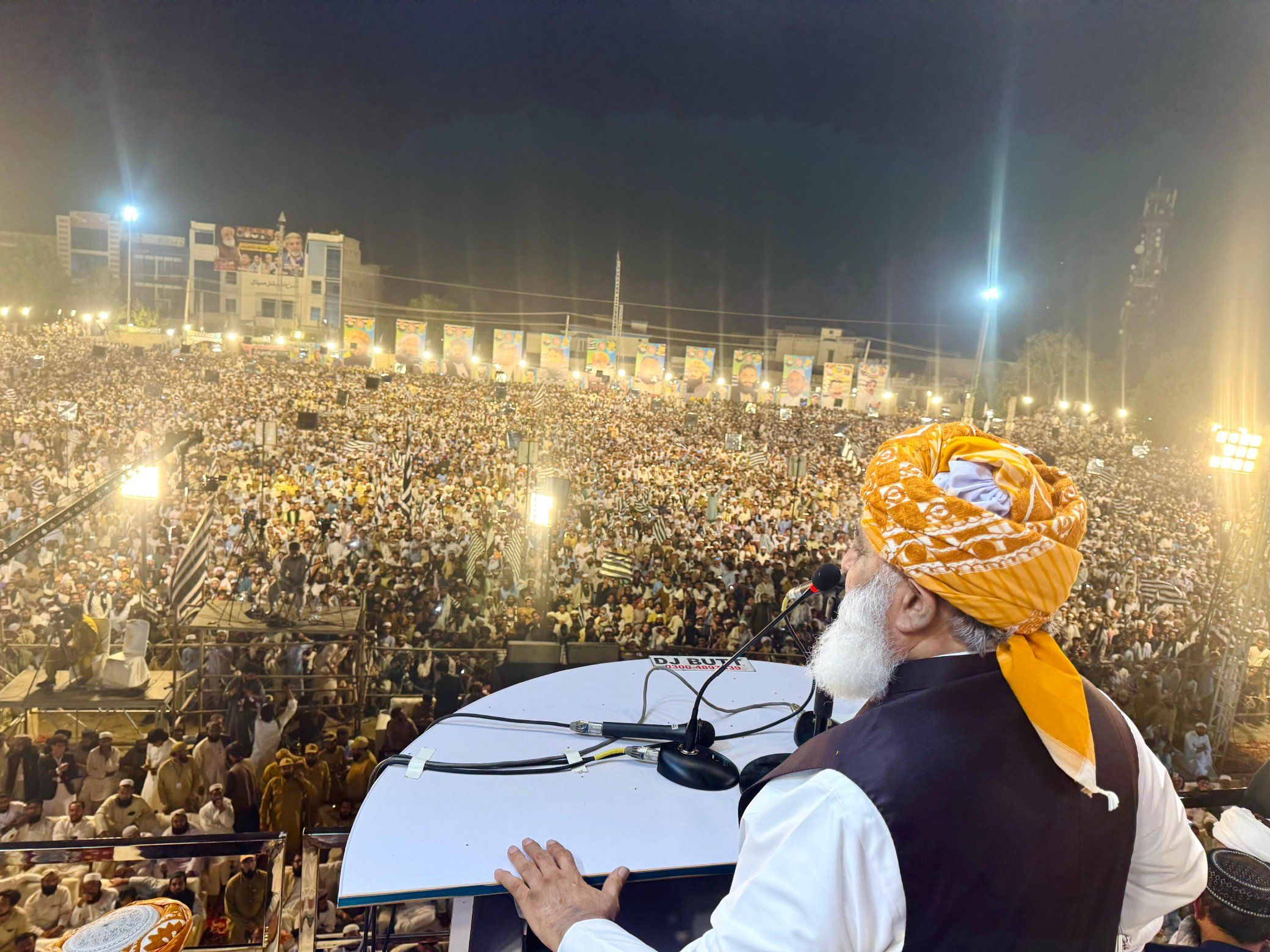 مولانا فضلالرحمن از سیاست پاکستان در قبال افغانستان نیز انتقاد کرد و گفت: «ما تجربه جنگهای سخت را داشتهایم؛ زمانی که کمونیستها آمدند، از مجاهدین حمایت کردیم؛ زمانی که مجاهدین با هم درگیر شدند، از برخی طرفها پشتیبانی کردیم؛ وقتی طالبان آمدند، از طالبان حمایت کردیم و حتی در برابر طالبان نیز نقشهایی ایفا شد. ما پایگاهها و اجازه عبور به امریکا دادیم، هواپیماها پرواز کردند و حالا برخی میگویند که دولت حاضر در افغانستان قابض است.»