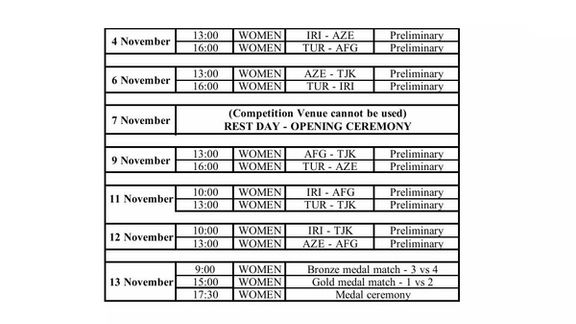 مسابقات والیبال زنان در ششمین دور بازیهای همبستگی کشورهای اسلامی، از فردا (سهشنبه، ۱۳ عقرب ۱۴۰۴) در شهر ریاض عربستان آغاز میشود. تیم والیبال دختران افغانستان در نخستین دیدار، ساعت ۵:۳۰ بعد از چاشت به وقت افغانستان، به مصاف تیم زنان ترکیه، قدرتمندترین تیم این مسابقات میرود.