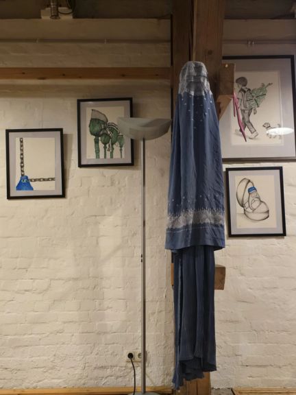 یک کاریکاتوریست افغان در شهر هامبورگ یک نمایشگاه اعتراضی را برگزار کرده است که محور آن حمایت از زنان افغانستان و مخالفت با حجاب اجباری و محرومیت زنان از تحصیل است.