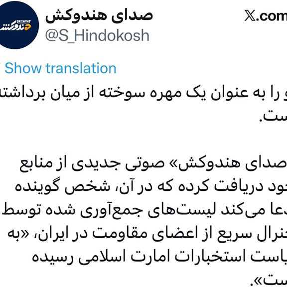 این وبسایت یک فایل صوتی را منتشر کرده و مدعی شد که «لیستهای جمعآوری شده توسط جنرال سریع از اعضای مقاومت در ایران، به ریاست استخبارات امارت اسلامی رسیده است.»
