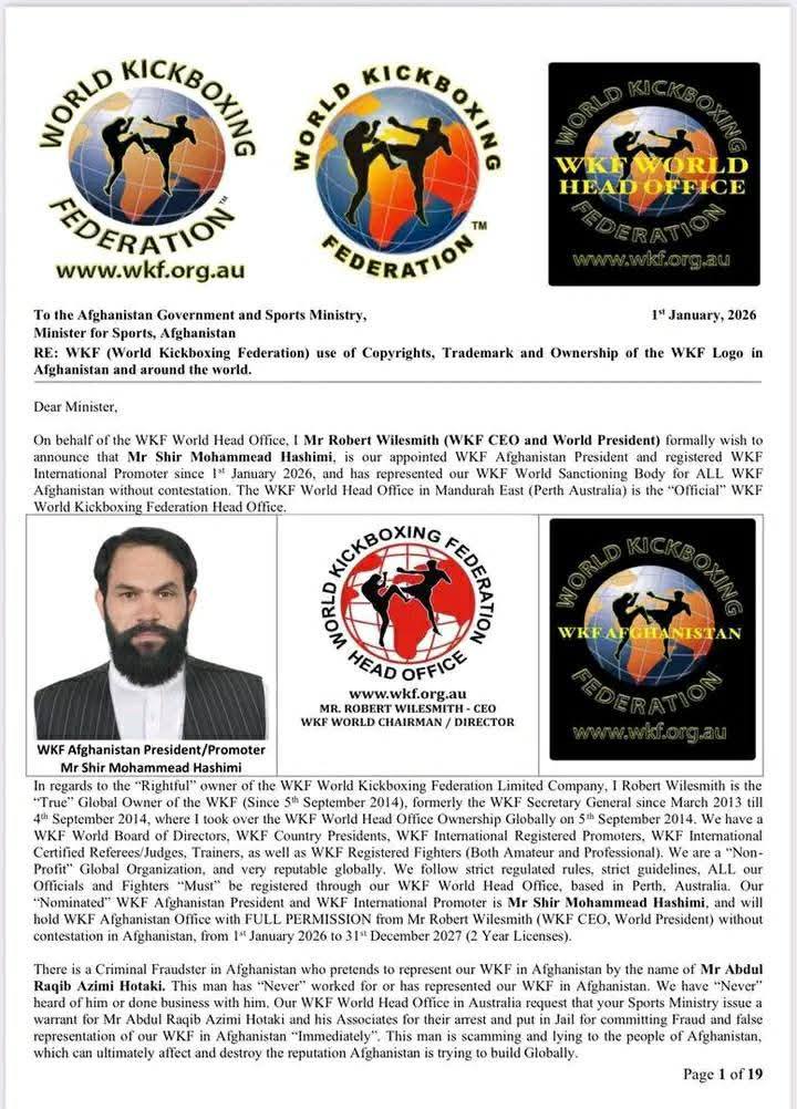 فدراسیون کیک بوکسینگ افغانستان عضویت فدراسیون جهانی را کسب کرد