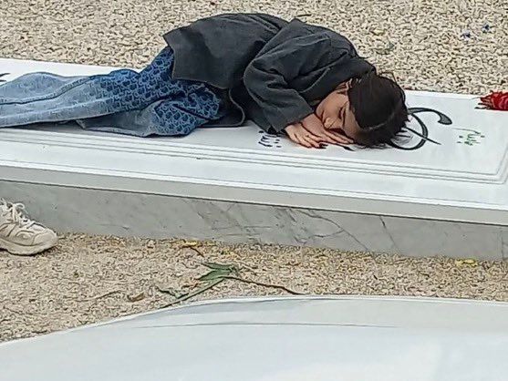 کشتار معترضان ایران؛ آنجلینا جولی تصویر دختر خوابیده بر مزار مادر معترض را بازنشر کرد