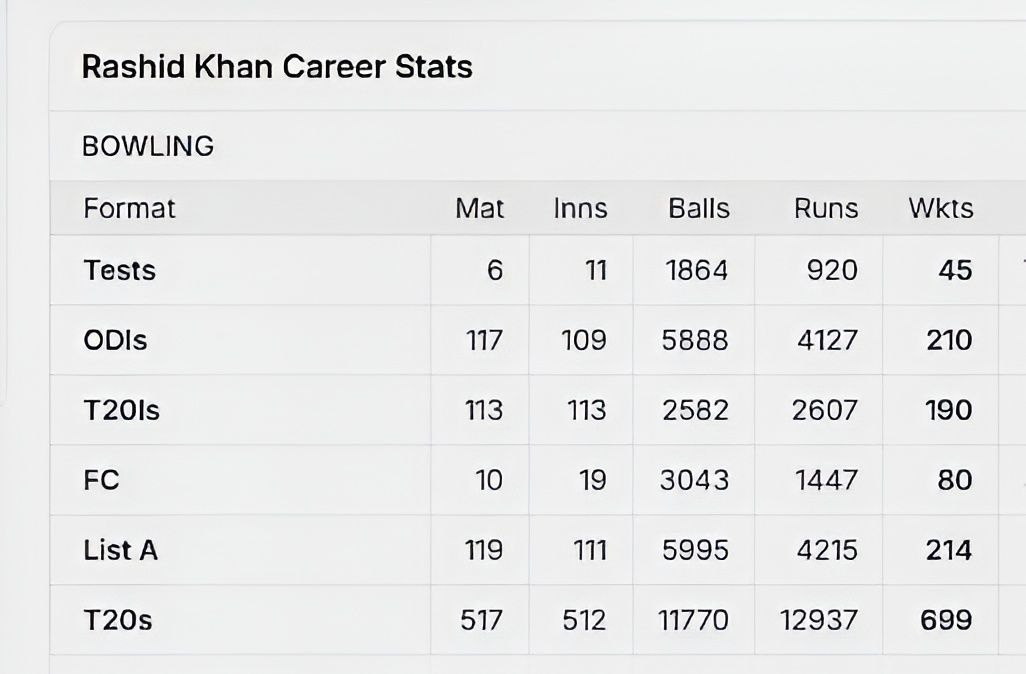 حالا راشد خان تنها یک ویکت دیگر با رکورد جاودانه هفتصد ویکت در مسابقات بینالمللی فاصله دارد.