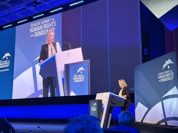 هجدهمین اجلاس ژنو برای حقوق بشر و دموکراسی روز چهارشنبه، ۲۹ دلو برگزار شد. در این نشست، مرضیه حمیدی، تکواندوکار افغانستان جایزه بینالمللی حقوق زنان را دریافت کرد و مسیح علینژاد، فعال ایرانی جایزه شجاعت اجلاس ژنو را کسب کرد.