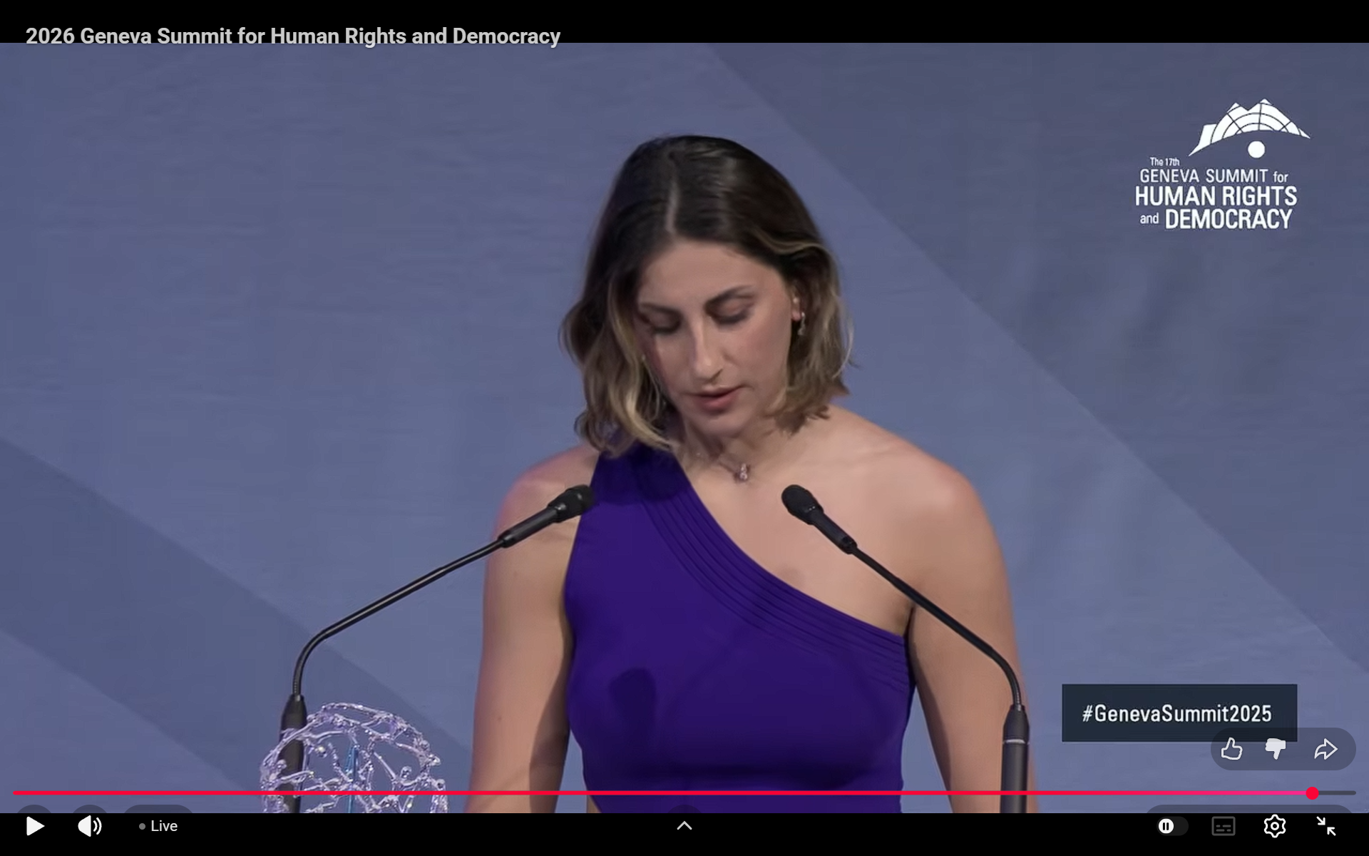 هجدهمین اجلاس ژنو برای حقوق بشر و دموکراسی روز چهارشنبه، ۲۹ دلو برگزار شد. در این نشست، مرضیه حمیدی، تکواندوکار افغانستان جایزه بینالمللی حقوق زنان را دریافت کرد و مسیح علینژاد، فعال ایرانی جایزه شجاعت اجلاس ژنو را کسب کرد.