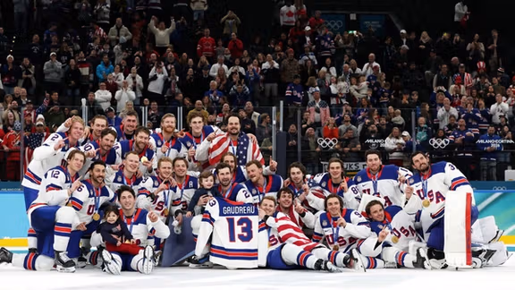 ادای احترام تیم هاکی روی یخ امریکا به جانی گودرو پس از طلای المپیک | افغانستان اینترنشنال