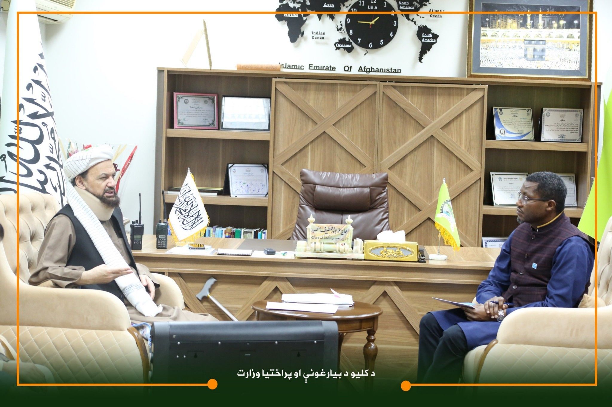 ملا عبدالطیف منصور، وزیر احیا و انکشاف دهات طالبان، روز دوشنبه در دفتر کارش با تاجالدین ایوالی، نماینده یونیسف در افغانستان دیدار کرد.
