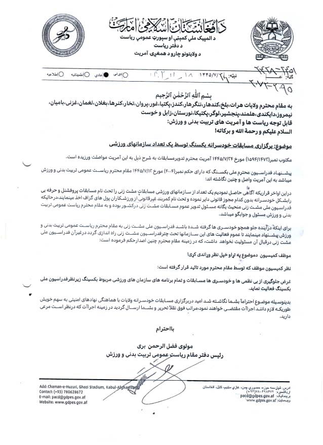 مسابقات بوکس به دنبال اعتراض ورزشکاران و استناد به یک نامه قدیمی ممنوع اعلام شد | افغانستان اینترنشنال