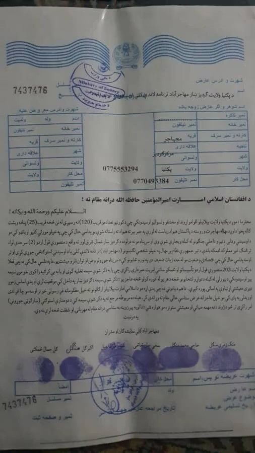 وشارك بعض الجنود، وثائق تُظهر عرائضهم المقدمة إلى مكتب ملا هبة الله وإلى وزارتي الدفاع والشؤون الداخلية التابعة لطالبان.