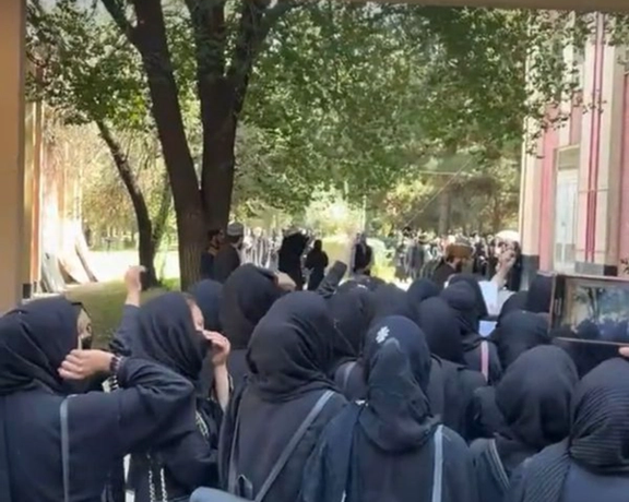Female students at the Talim wa Tarbia University held a demonstration on Saturday and chanted the slogan "Security is our right”. These students demanded that the genocide of Hazaras in Afghanistan must be stopped.