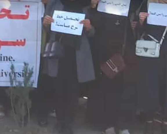 A group of women gathered in front of the Kabul University on Tuesday and protested against the expulsion of female students from the university. The Taliban warned the demonstrators that they will not take responsibility if the protesters become the target of a suicide attack.