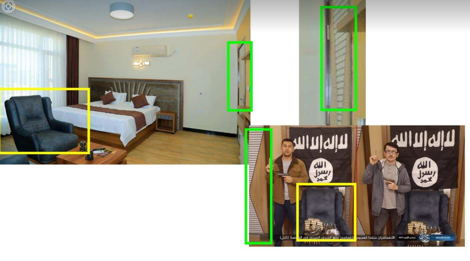 These experts told Afghanistan International that the ISIS-published propaganda photos of the attackers have been taken inside the hotel.