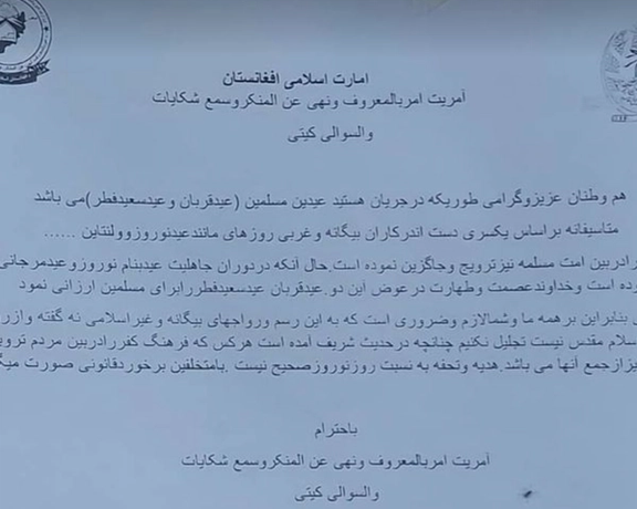 The Taliban have banned the celebration of Nowroz, the Persian new year, in Daikundi province. The ban has been imposed in the Hazara-Shia-dominated province by the group’s Directorate of Promotion of Virtue and Prevention of Vice.