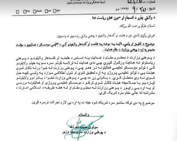 The Taliban’s Ministry of Education has ordered the suspension of all educational institutions in Helmand and Kandahar until further notice. The ministry has assigned a committee to assess the projects and activities of educational institutions in these two southern provinces.