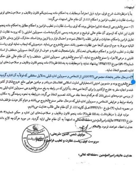 A Taliban official letter has revealed that 8,192 individuals, including former government officials, have been prohibited from leaving the country in 1403 (Solar Hijri Calendar).